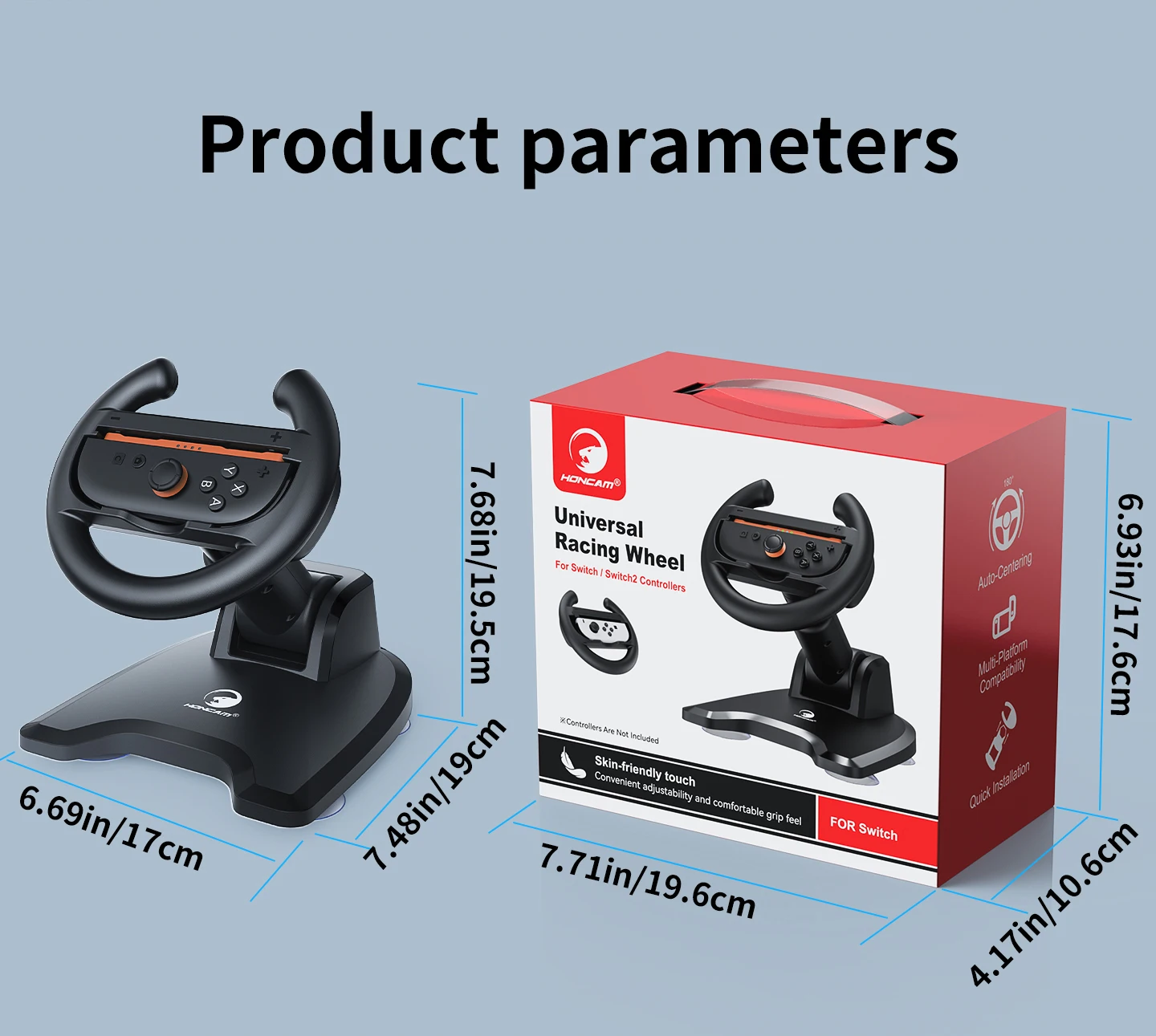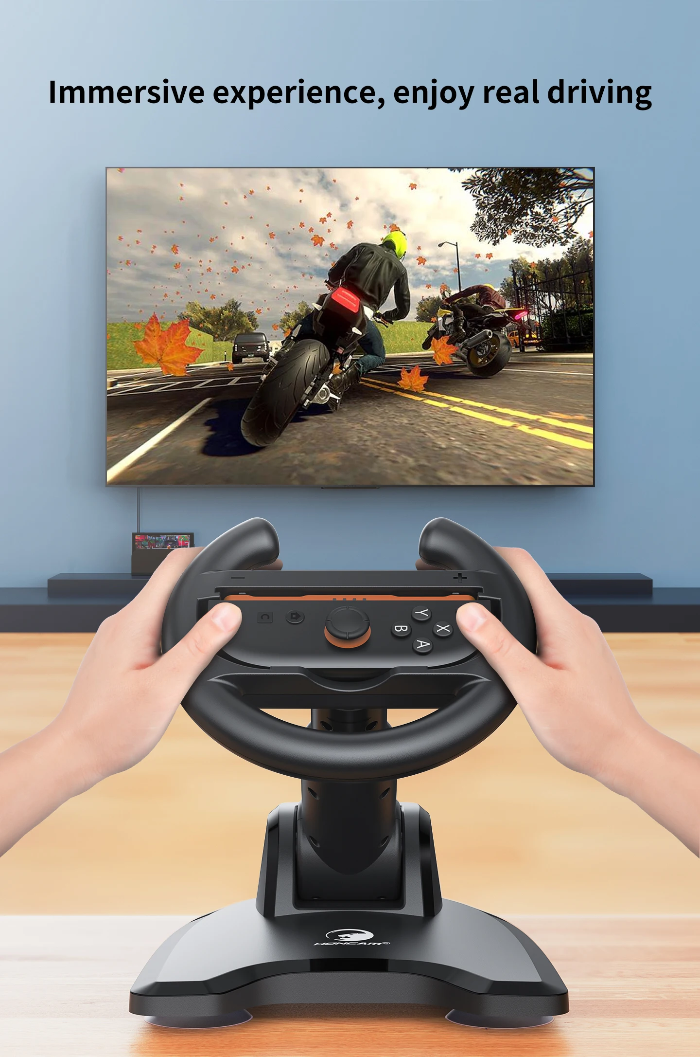 Support de roue de course universel HONCAM pour contrôleur de roue de jeu Joycon Switch & Switch2 avec base à ventouse sécurisée :