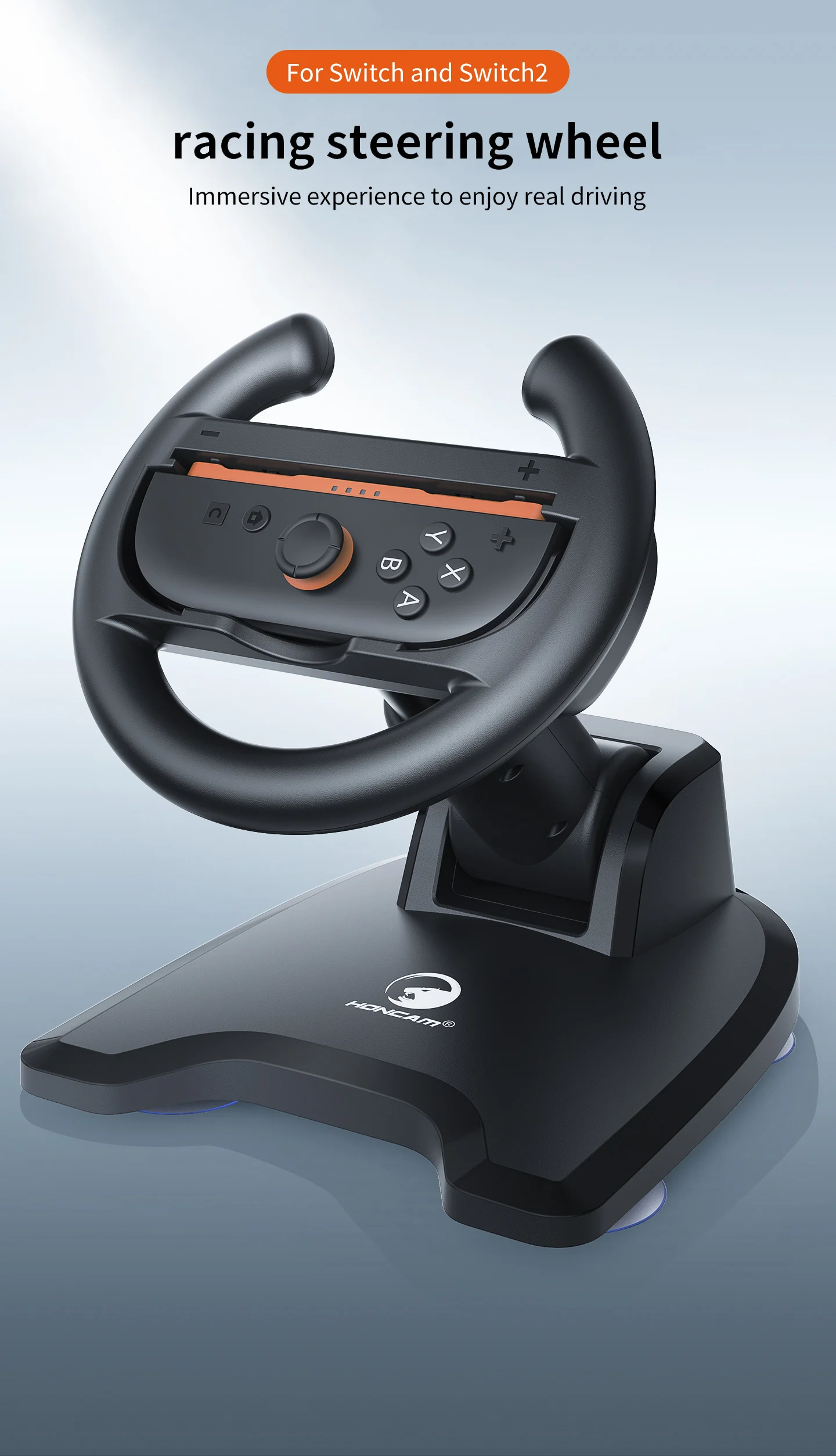 HONCAM support de roue de course universel pour Switch & Switch2 Joycon contrôleur de roue de jeu avec base à ventouse sécurisée pour accès NS2